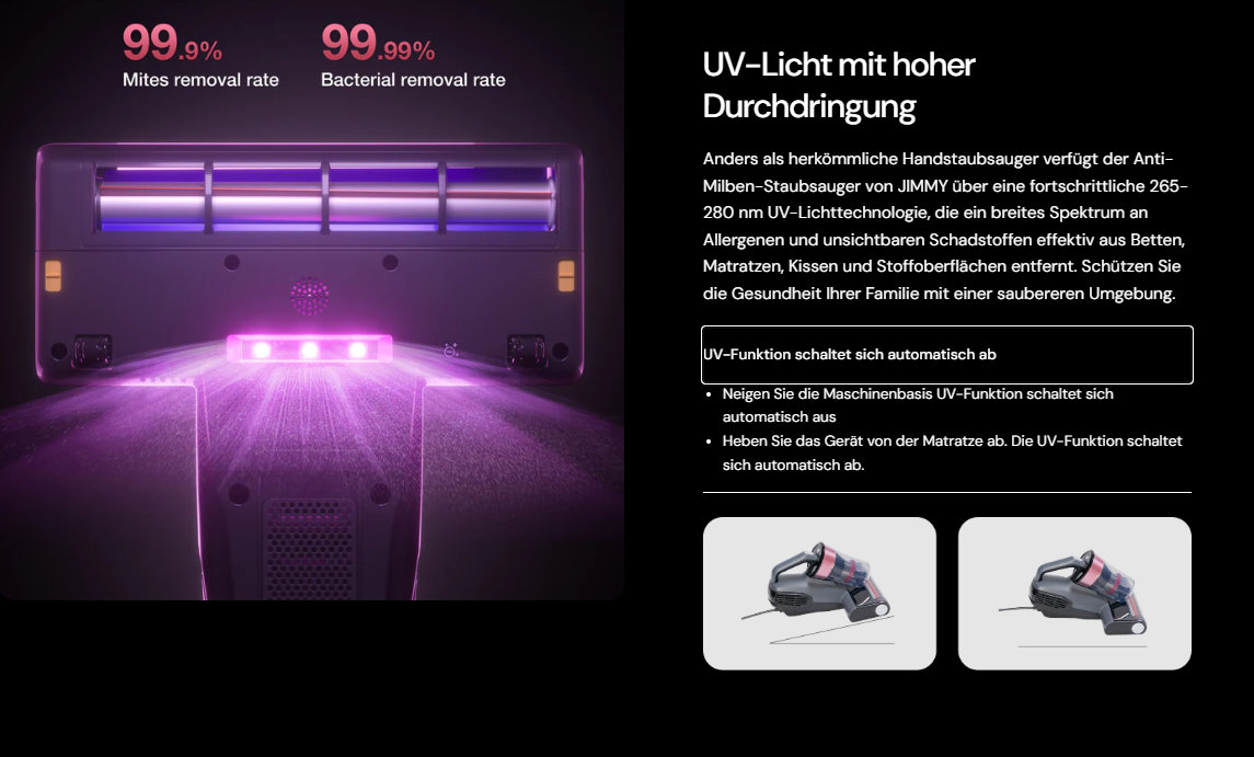 JIMMY BX8 Matratzenreiniger 600W mit UV-C Licht und Ultraschall