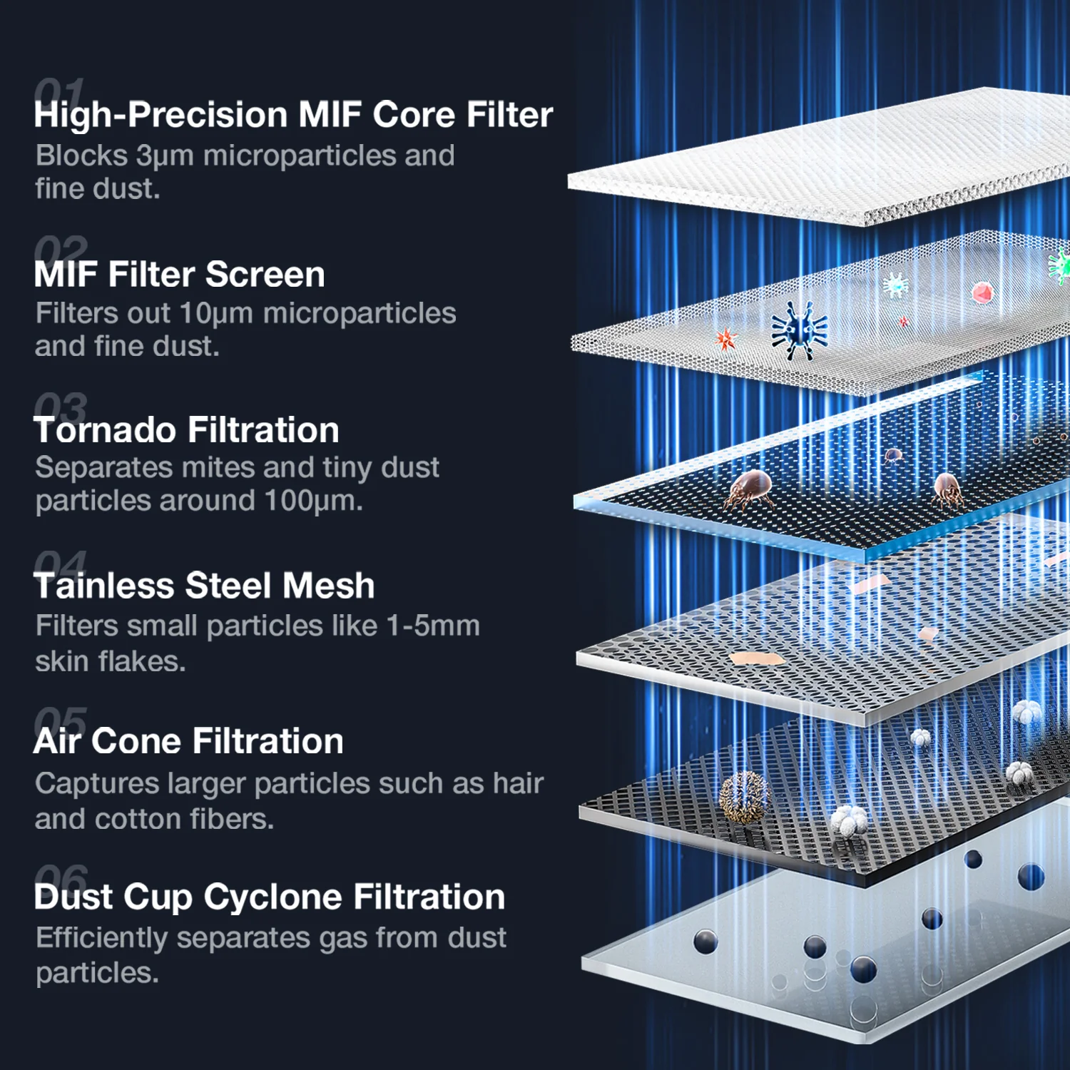 Ausgestattet mit einem leistungsstarken 500W Motor erzeugt der BX8 eine starke Saugkraft von 15 KPa.