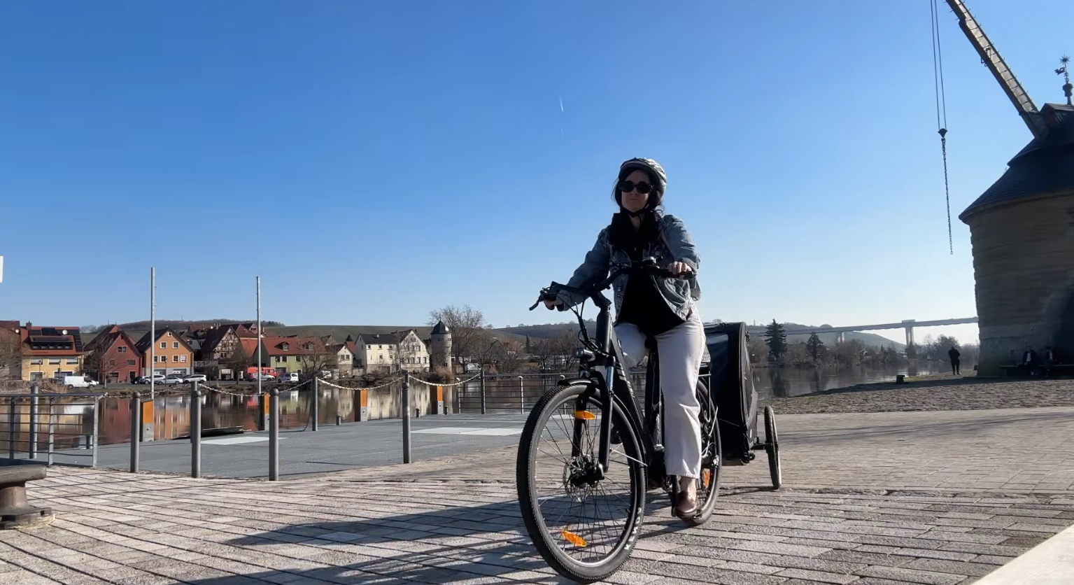 Ich nehme meinen Fahrradanhänger mit. Die Leute denken wahrscheinlich, das ist seltsam, wenn kein Kind hinten drin sitzt, aber ich benutze ihn ständig für meine Einkäufe.