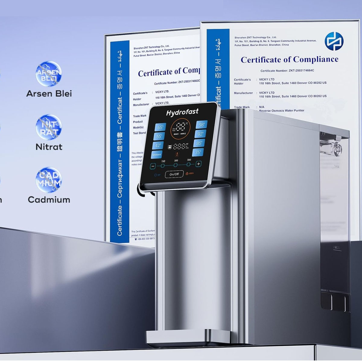 Hydrofast W100: 45°C für Babynahrung, Kindersicherung, UV-Sterilisation
