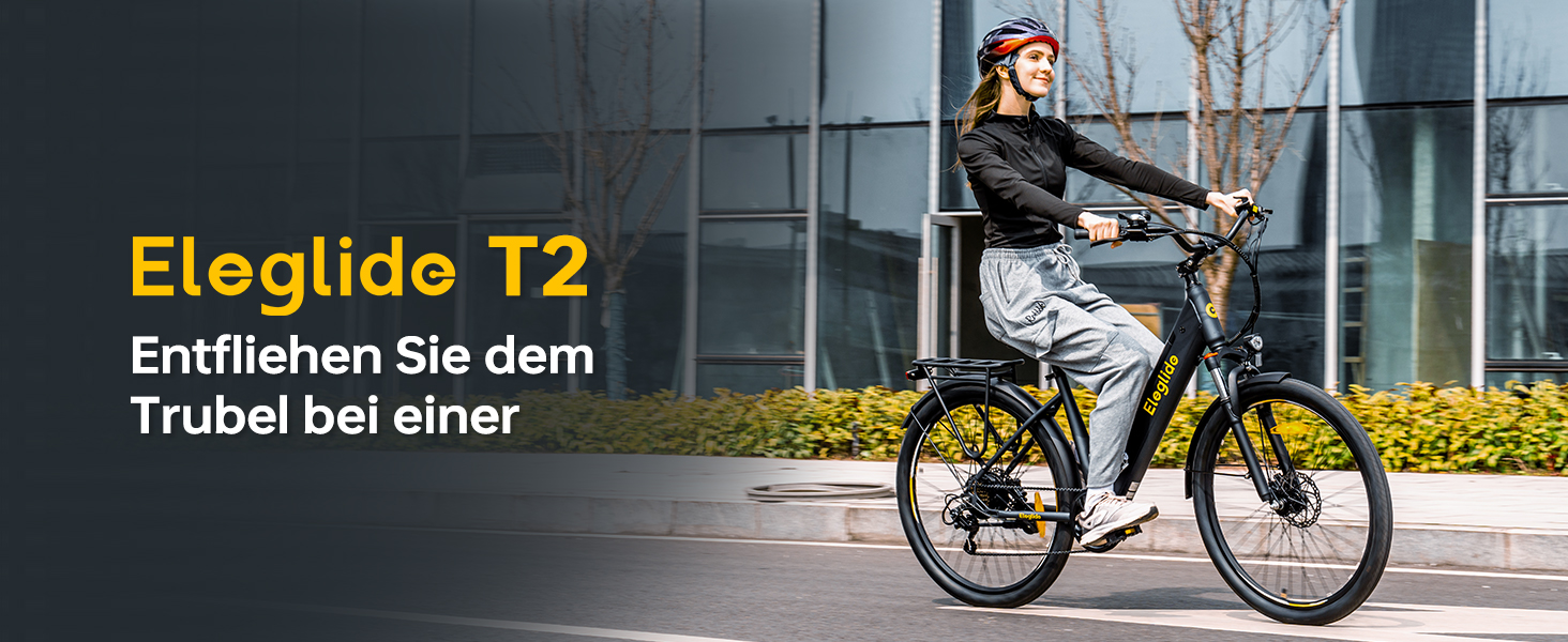 Das Eleglide T2 ist ein vielseitiges 27,5-Zoll E-Bike für Pendler und Freizeitfahrer. Mit hydraulischen Scheibenbremsen, einer Reichweite von bis zu 100 km und komfortabler Federung bietet es Sicherheit, Fahrkomfort und zuverlässige Leistung im Alltag. Ideal für Stadtfahrten, längere Touren und tägliches Pendeln.