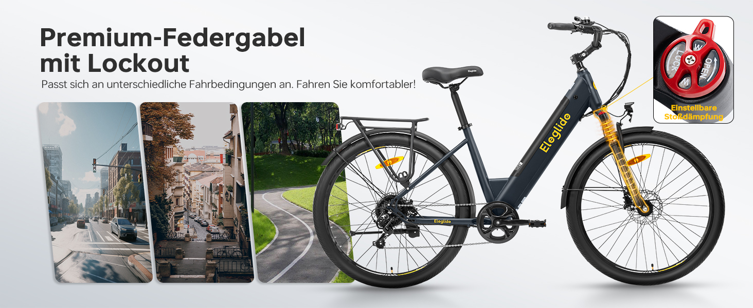 - Komfortable Federgabel – Reduziert Vibrationen auf unebenem Untergrund und verbessert Stabilität sowie Fahrkomfort auf längeren Strecken.
