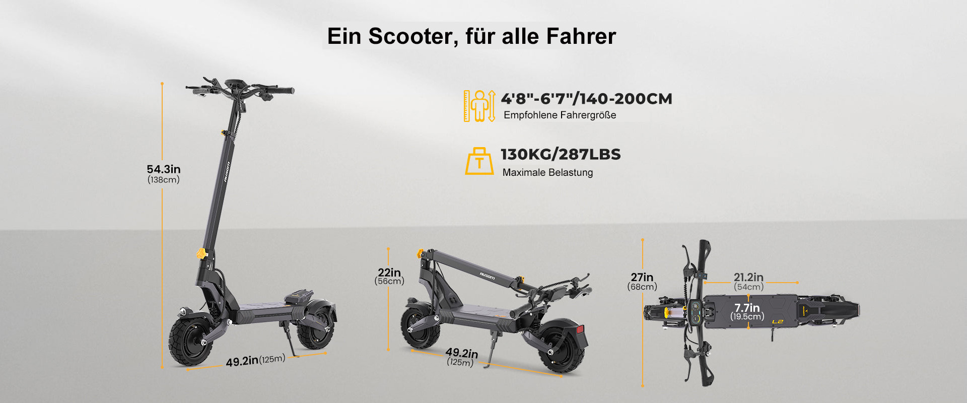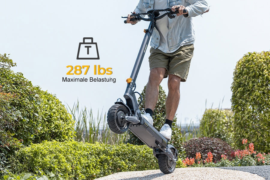 - Vollfederung & 10" Offroad-Reifen – Mehr Fahrkomfort auf Asphalt, Kopfsteinpflaster und Schotter.