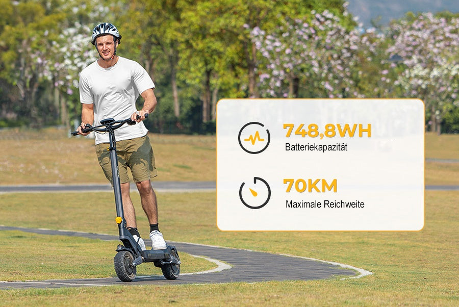 Die hohe Reichweite reduziert Ladezyklen und macht den Scooter attraktiv für Pendler oder längere Strecken zwischen Wohnort und Arbeitsplatz. Auch für Wochenendausflüge oder größere Stadtgebiete geeignet.