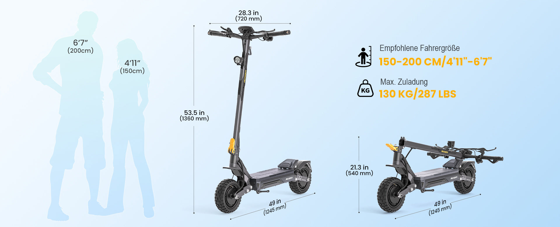 - Motor mit 1100 W Spitzenleistung – Starke Beschleunigung und zuverlässige Leistung auf städtischen Strecken.