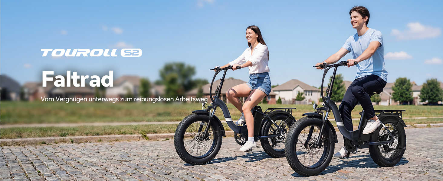 Touroll S2 Klapp-E-Bike 20 Zoll Fatbike Step-Thru Blau 48V 15Ah 250W StVZO 150km Reichweite