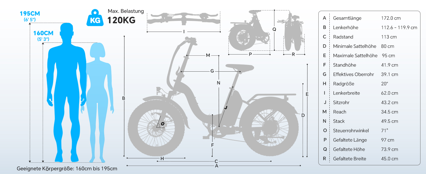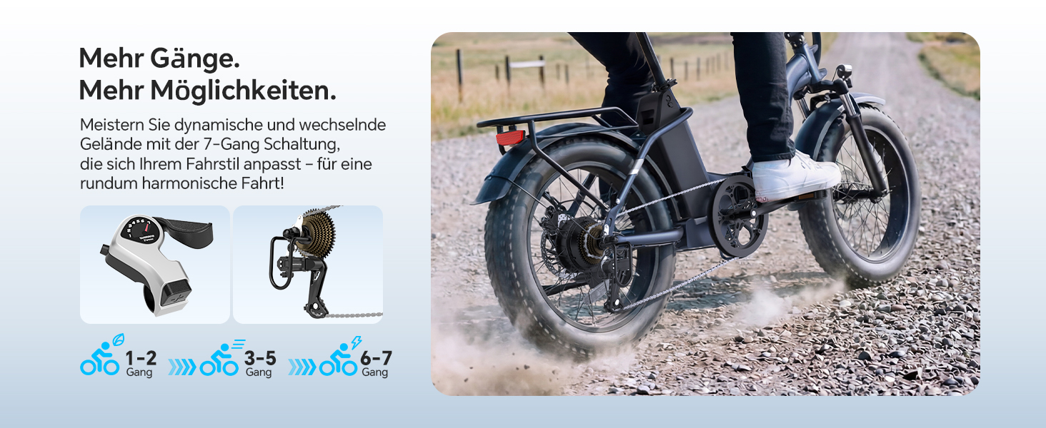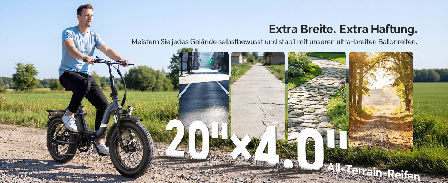 - Geländegängige Fat-Reifen - 20×4,0 Zoll Reifen bieten maximalen Grip auf Sand, Schnee und Schotter für eine stabile Fahrt in jedem Gelände.