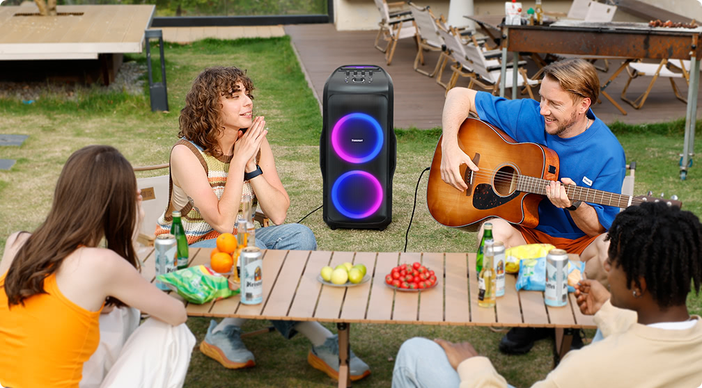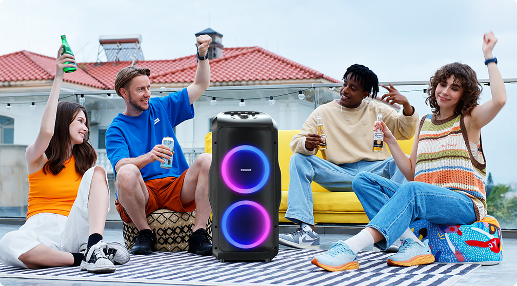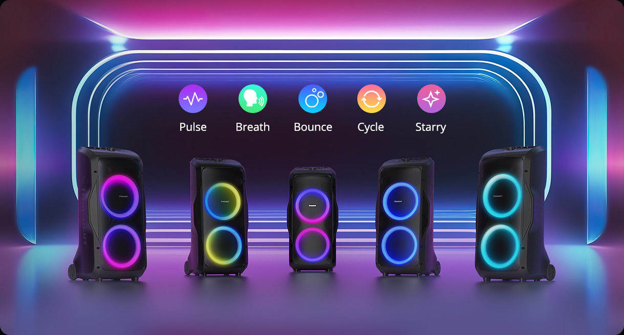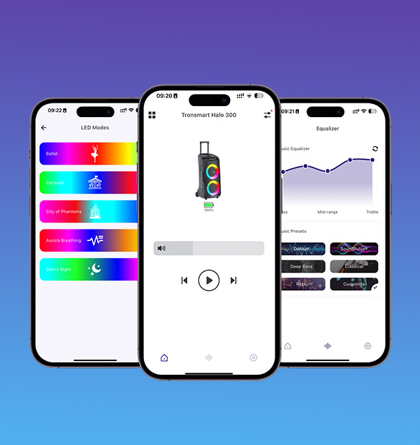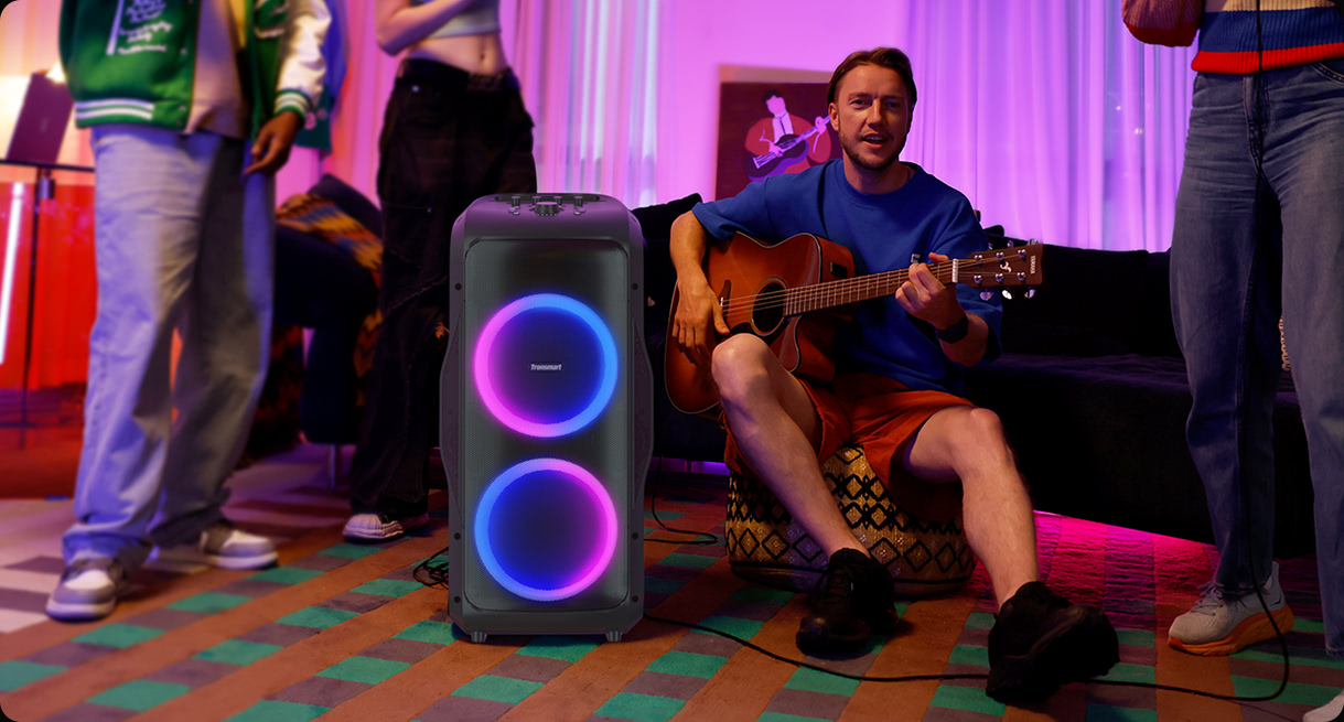 Der Tronsmart Halo 300 ist ein tragbarer Party Lautsprecher mit 240W Leistung und 2.2‑Kanal 3‑Wege-Soundsystem für laute, klare Beschallung bei Feiern und Events. Die 270°-Abstrahlung sorgt für eine breitere Klangverteilung, während bis zu 20 Stunden Akkulaufzeit längere Veranstaltungen unterstützt. Mit Mikrofon-, Gitarren- und XLR-Anschluss eignet sich der Party Speaker auch für Karaoke, Moderation und einfache Live-Performances.