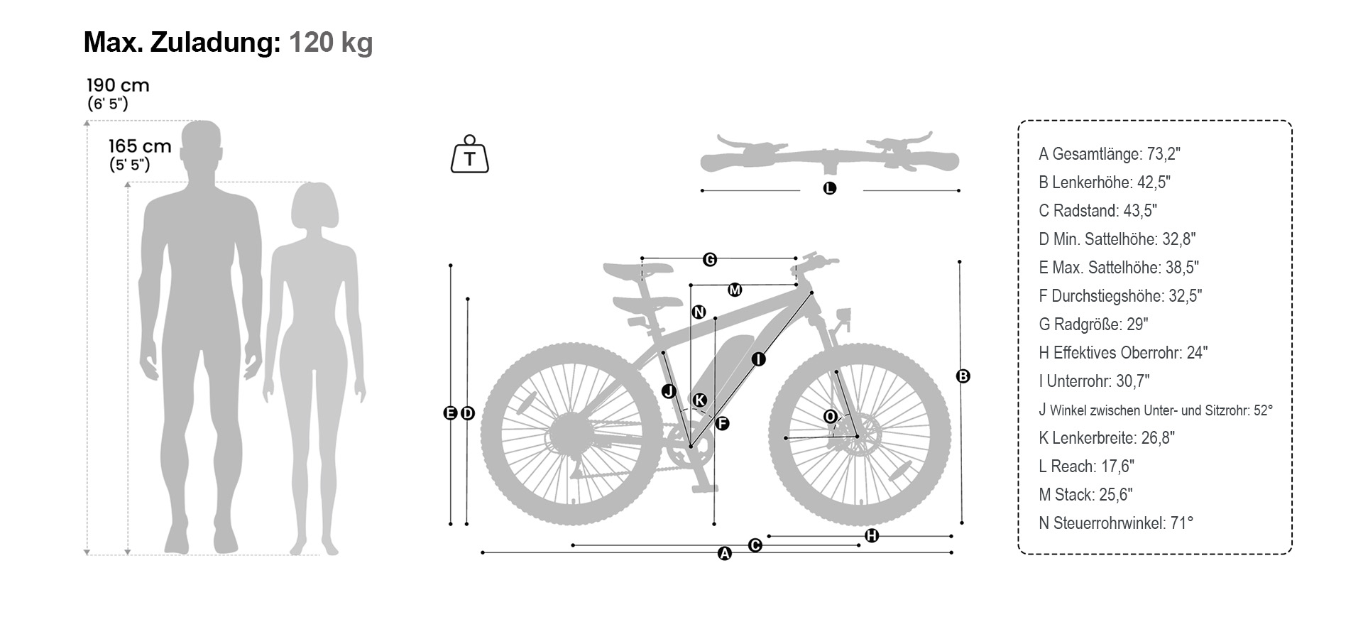 - 80 mm Federgabel + 29" x 2.35" Reifen – Dämpfen Vibrationen und erhöhen Traktion auf schlechten Wegen.