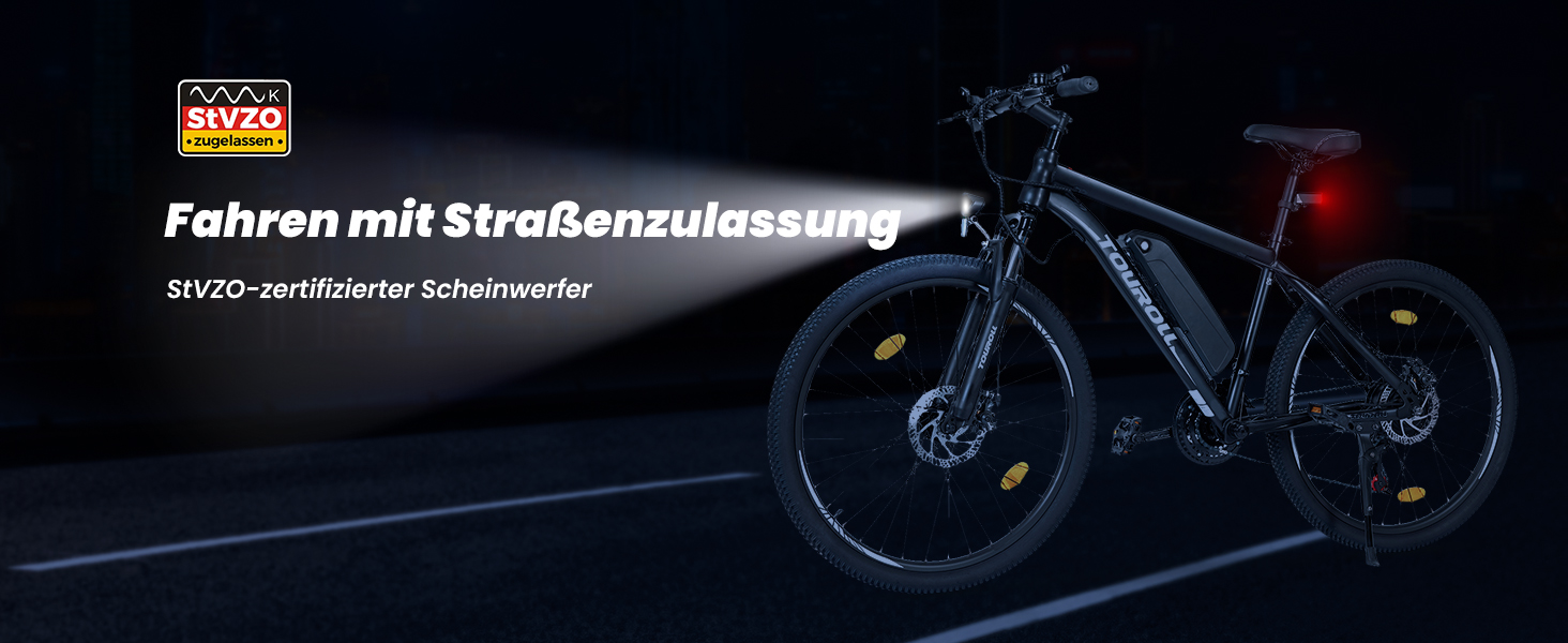 - StVZO-konforme Beleuchtung – Die zertifizierte Lichtanlage sorgt für optimale Sichtbarkeit ohne Blendeffekt und erfüllt alle Anforderungen für die sichere Teilnahme am Straßenverkehr.