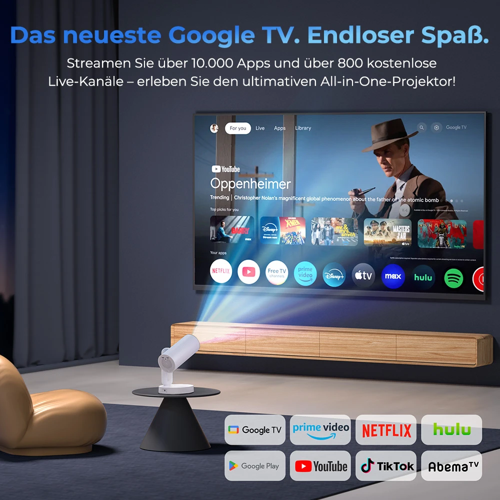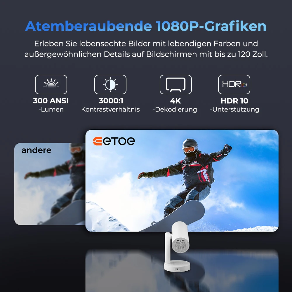 ETOE Starfish Plus Google TV Beamer – Mini Projektor mit 140° Rotation, Auto-Keystone, 5G WLAN, 120 Zoll
