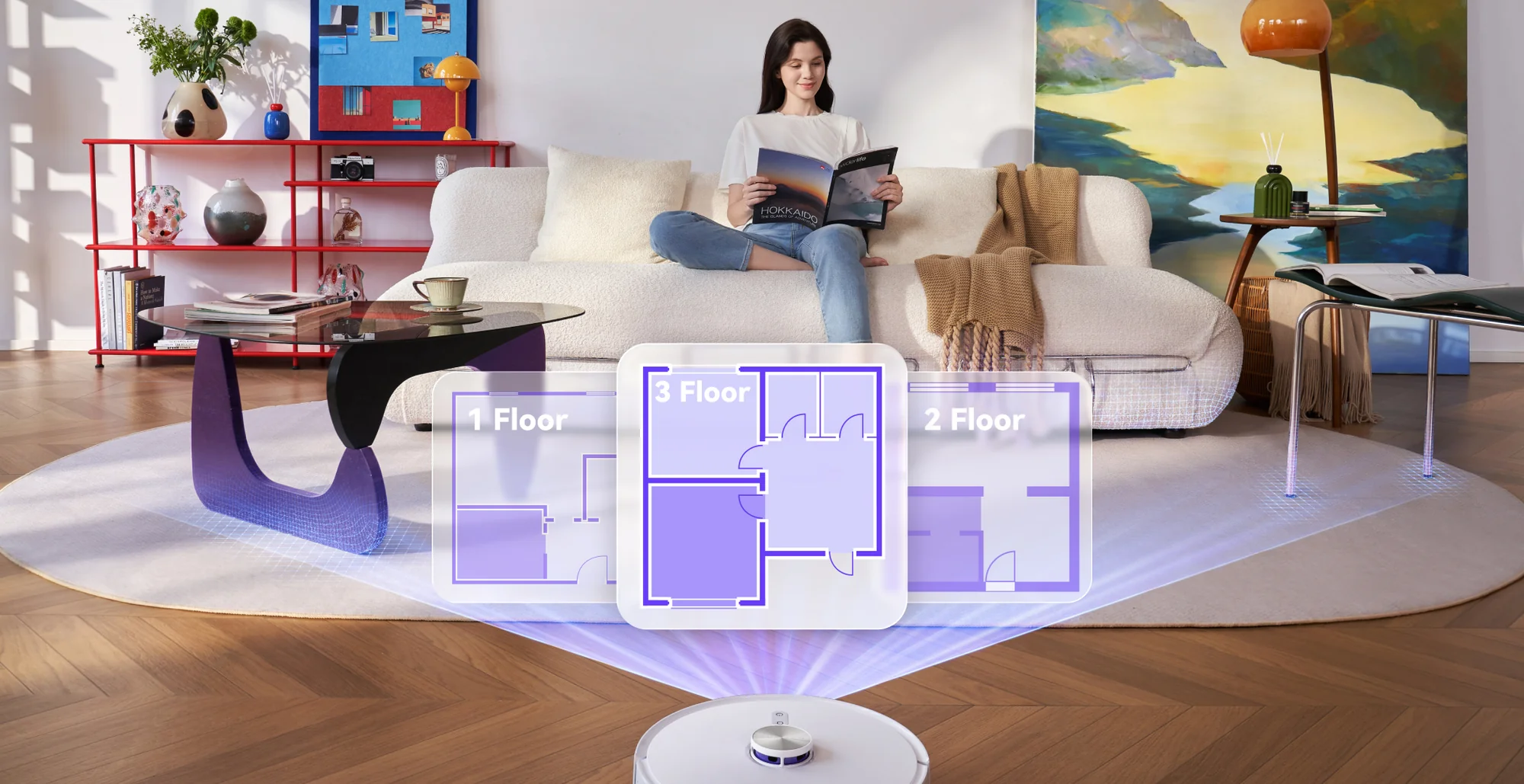 Der Freo S orientiert sich zuverlässig in Ihren Räumen: Hochpräzise LDS-Laser-Navigation erfasst die Umgebung in 360° und erstellt detaillierte Karten. Mehrere Etagenpläne können gespeichert werden. Hindernisse wie Türschwellen (bis 20 mm) werden mühelos überwunden – der Reinigungsablauf bleibt flüssig und ohne Unterbrechung.
