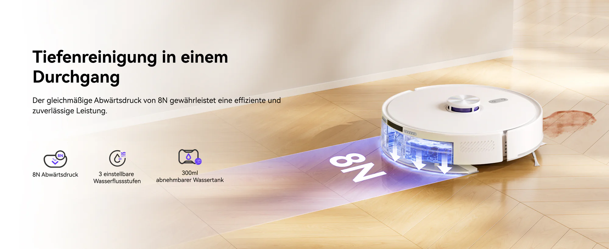 3. Effektives Wischsystem – 8N Anpressdruck für hartnäckige Flecken