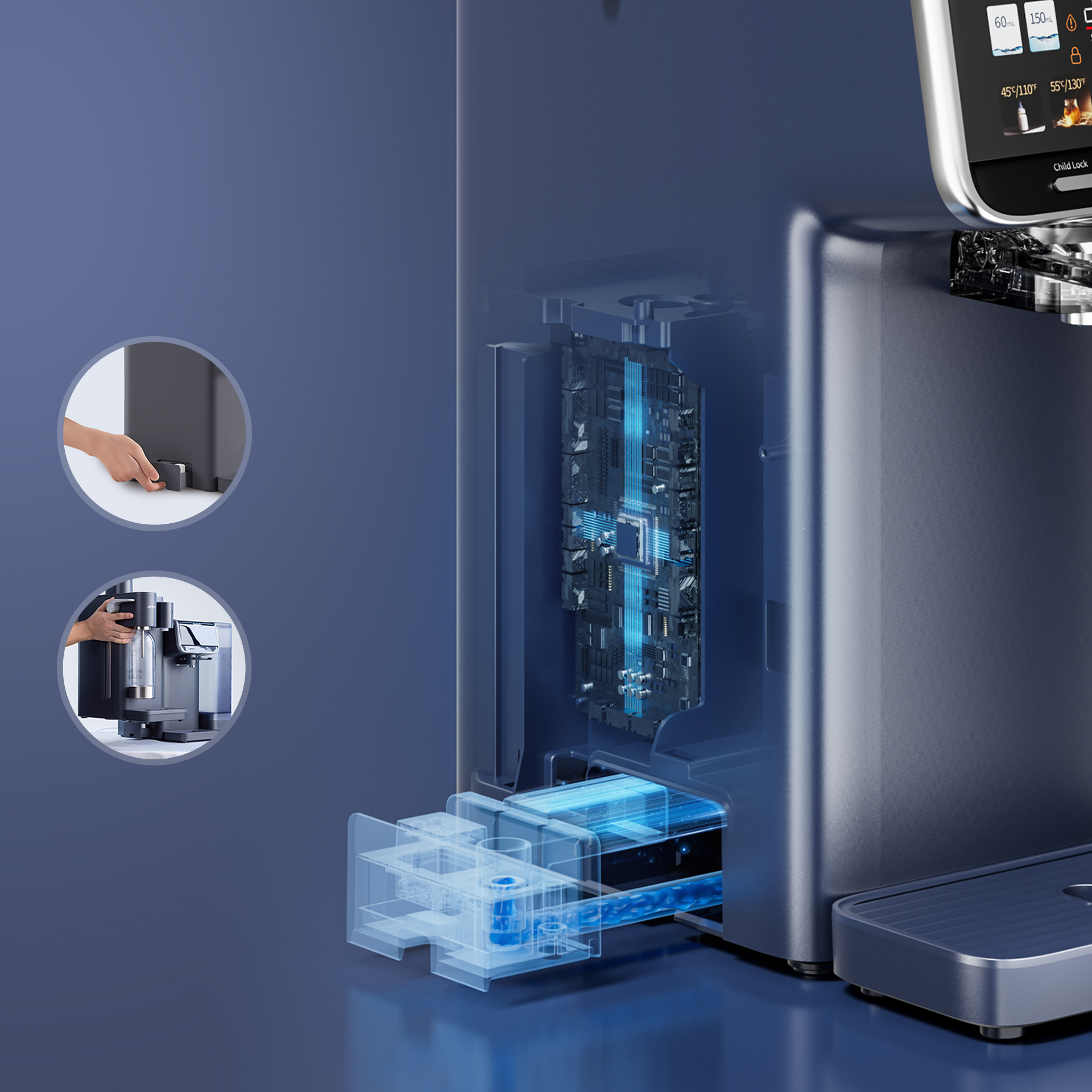 - Sofortiges Heißwasser in 3 Sekunden – Sieben Temperaturstufen von 45 °C bis 98 °C für Tee, Kaffee oder Babynahrung.
