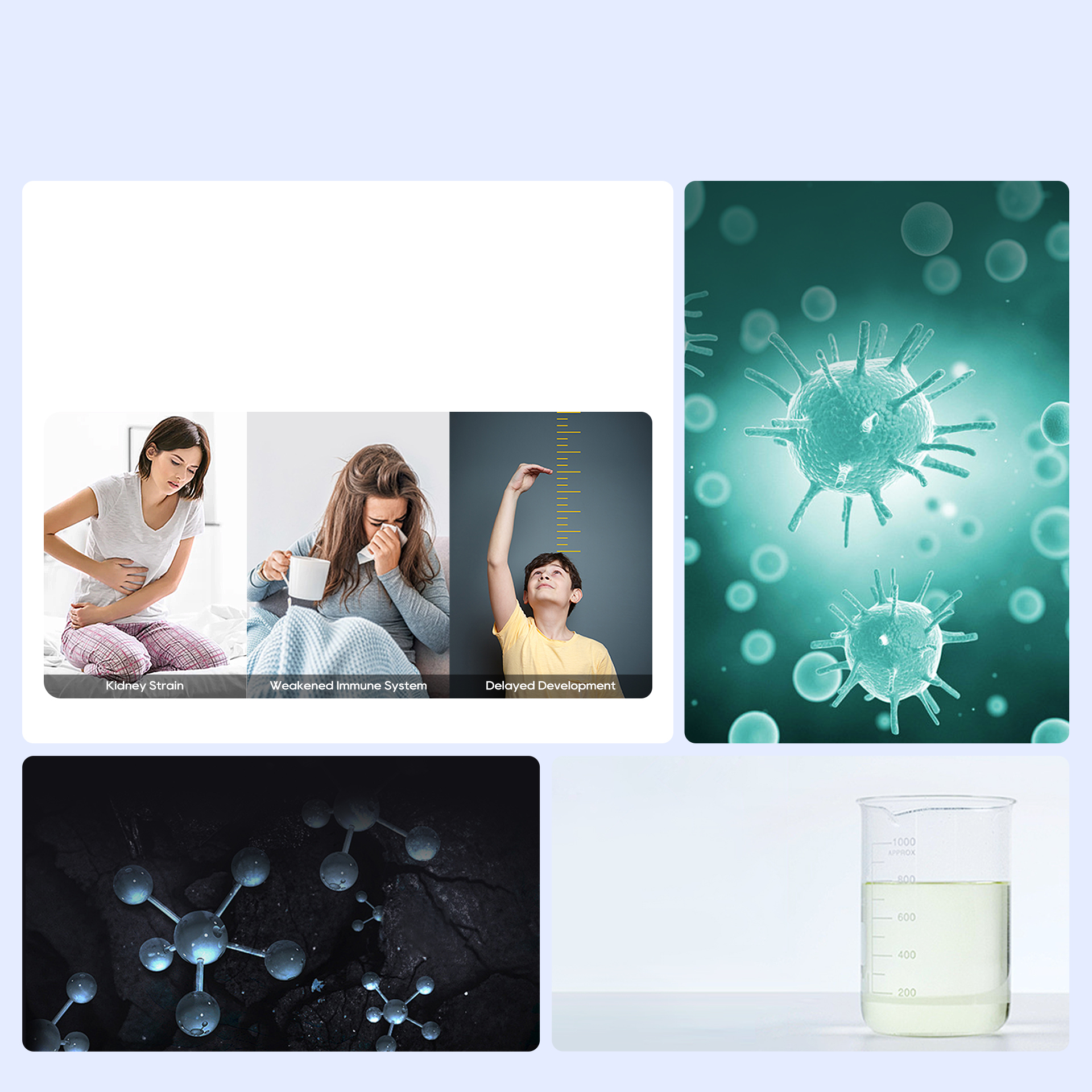 Das integrierte RO-Filtersystem entfernt bis zu 99,99 % der im Wasser enthaltenen Verunreinigungen, darunter Schwermetalle, Chlor und PFAS. Die anschließende Remineralisierungsstufe ergänzt wichtige Mineralien und sorgt für einen ausgewogenen Geschmack.